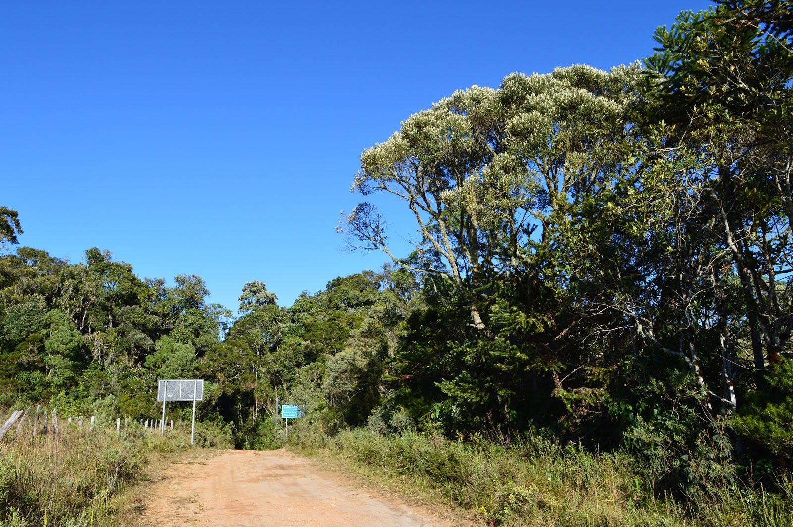 Sigo em direção da Fazenda da Onça por uma estradinha de terra que passa pela exuberante floresta ombrófila mista que domina a região.